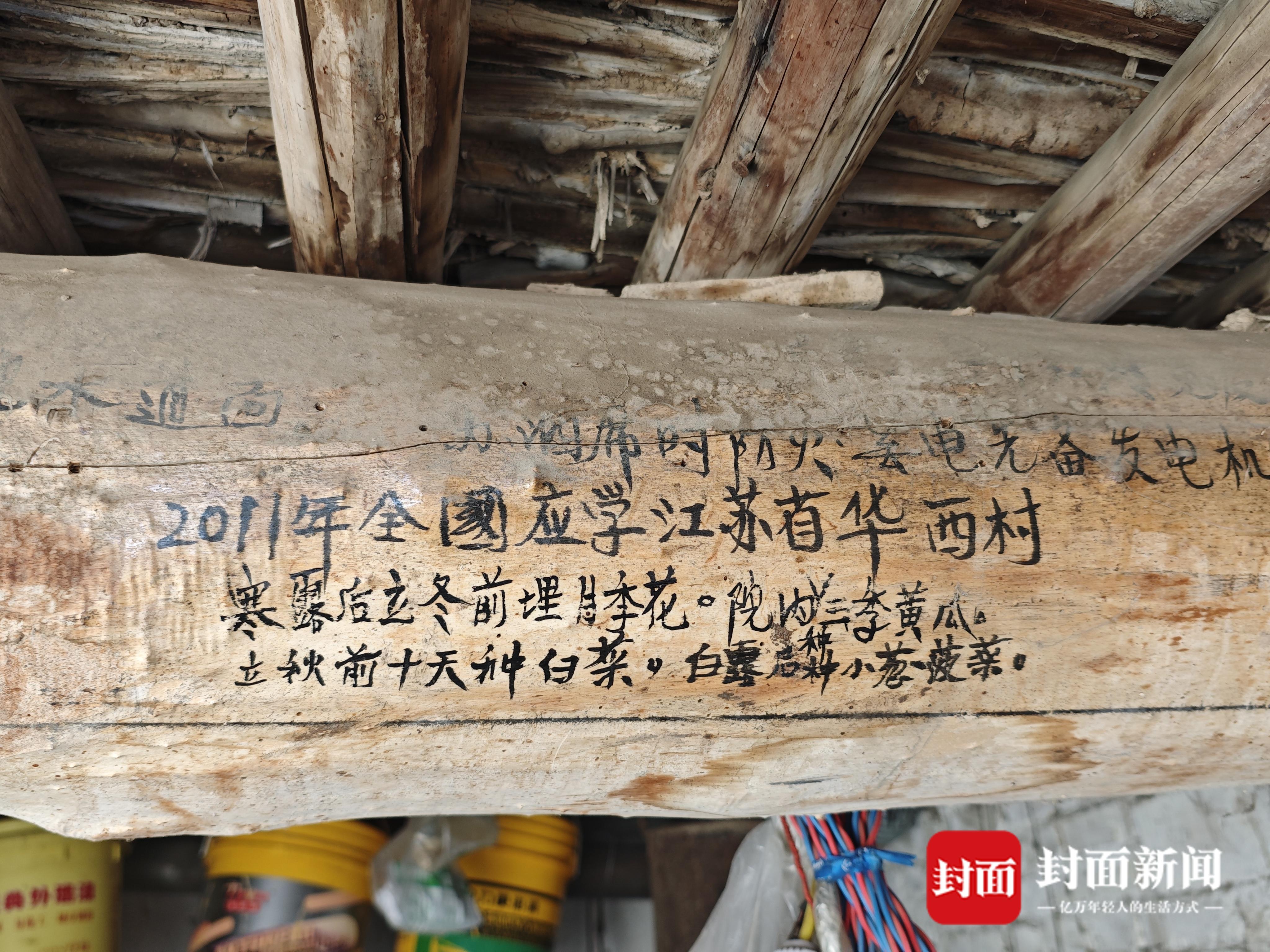 重访此处,蔡山海发现砖墙上、房梁上、猪圈里,以致狗盆中,王人有羊毫笔迹。“在放笤帚的一个角门上发现了‘一天之计在于晨,一年之计在于春’,时间是2000年的10月份。这即是最早的记载。”不知是很是照旧不测,张福青老东说念主用教导众东说念主防卫时间、防卫开局的句子,开启了24年的记载生存。