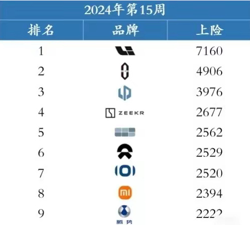 值得属主义是,小米旗下首款电动汽车小米SU7于4月初启动托付,2024年第15周也等于小米SU7上市的第二周。本周小米仅凭借一款纯电轿跑车型,即在上险量方面跨越了腾势和深蓝,与蔚来和极氪这两大纯电豪华品牌也惟一几百辆的差距。以此估计,小米SU7上市首月的上险量大致不错达到8000辆把握。