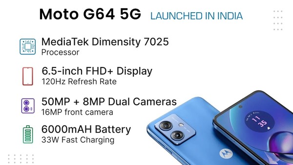 【CNMO科技音讯】4月16日,moto G64 5G严防在印度发布,价钱和规格公开。这是一款新的中端居品,是全国上第一款遴荐联发科Dimensity 7025芯片组的手机。领有6000mAh的大电板,增强音频体验的杜比全景声,以及IP52防尘防水等第。