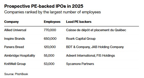 赴任工东说念主数增长而言,一些来岁可能央求IPO的招聘界限最大公司包括由Roark Capital Group撑捏的Inspire Brands Inc.,以及由Caisse de dépôt et placement du Québec撑捏的Allied Universal Security Services LLC。